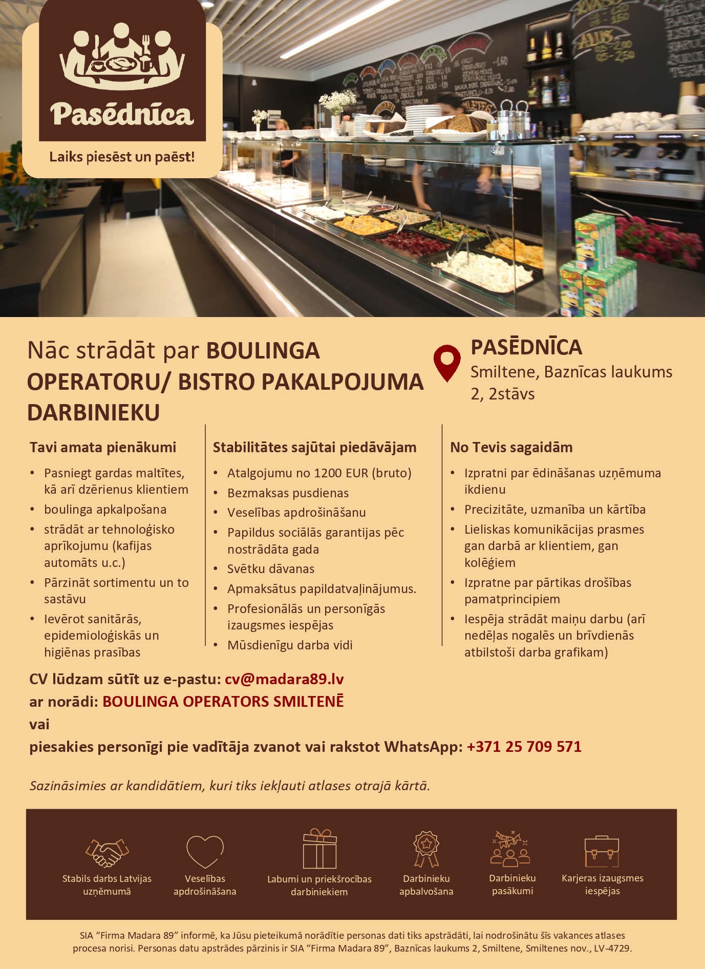 Bistro pakalpojuma darbinieks/-ce, Boulinga operators/-e