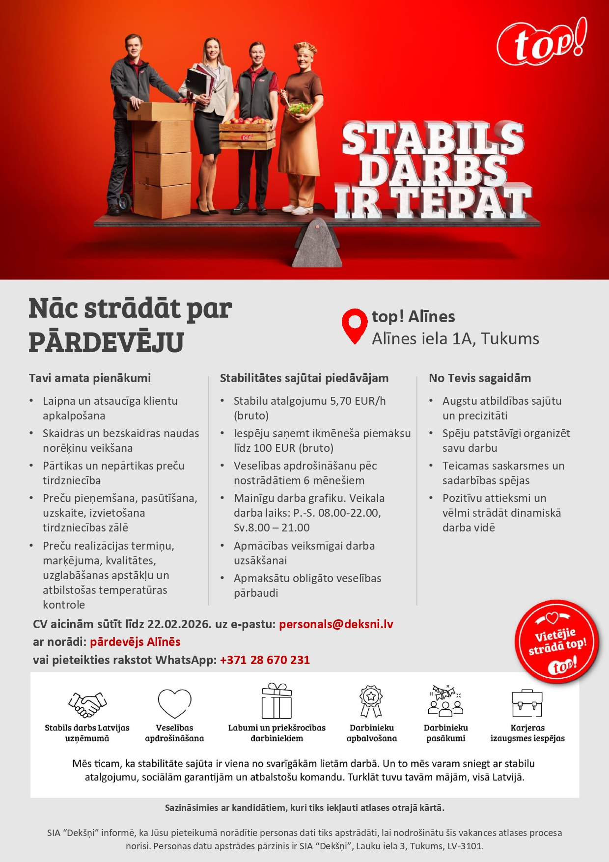 Darbs maiņās 08:00-22:00 vai 08:00-21:00