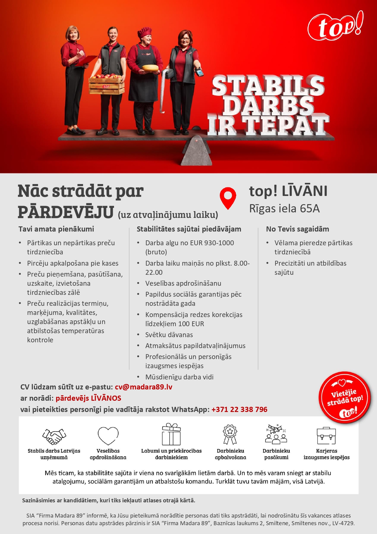 Pārdevējs/-a uz atvaļinājumu laiku