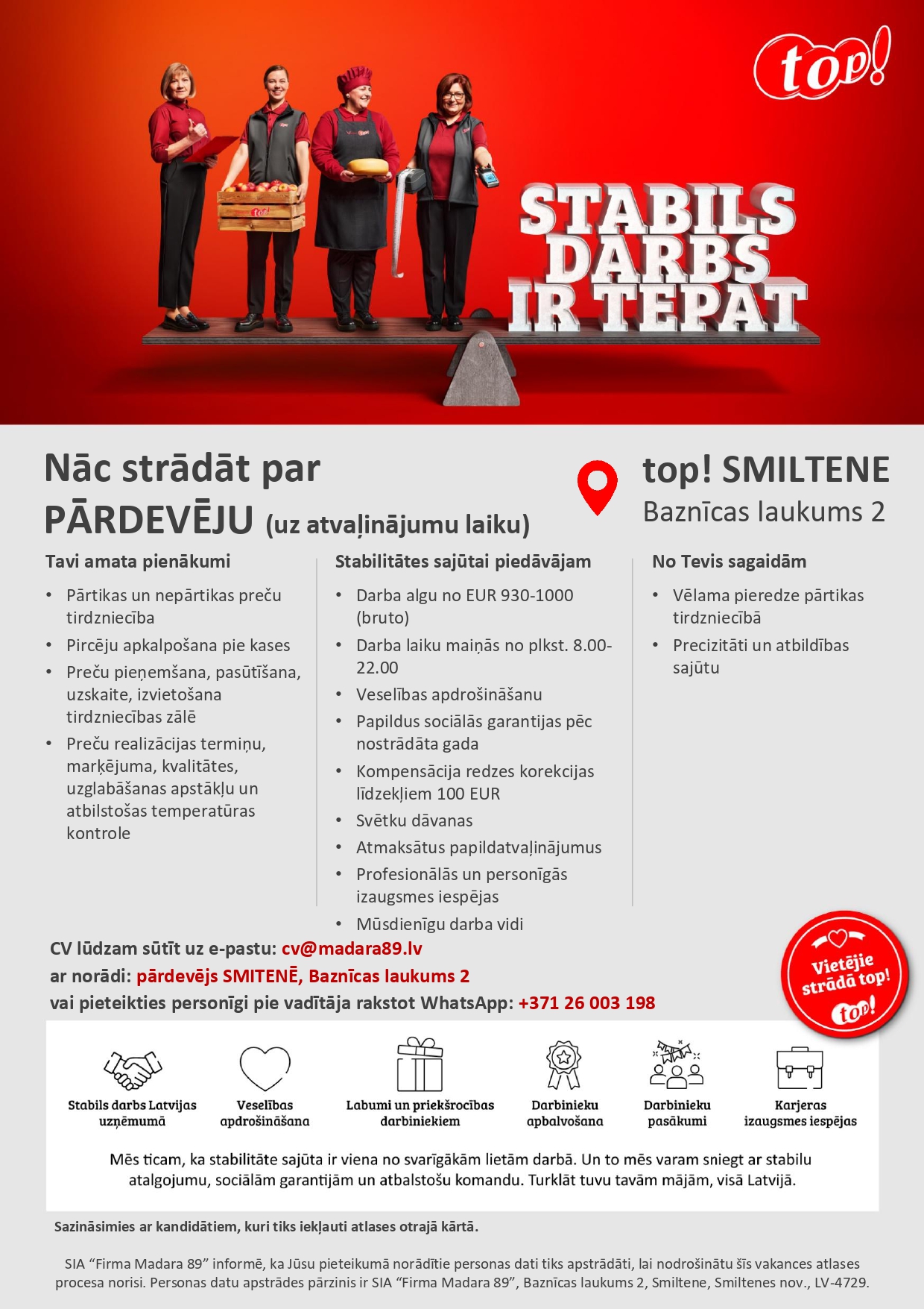 Pārdevējs/-a uz atvaļinājumu laiku