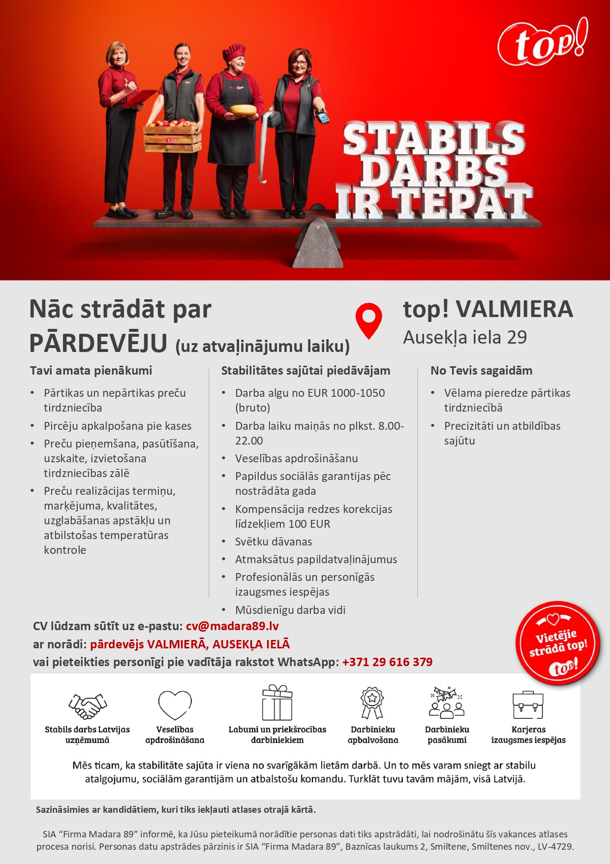 Pārdevējs/-a uz atvaļinājumu laiku
